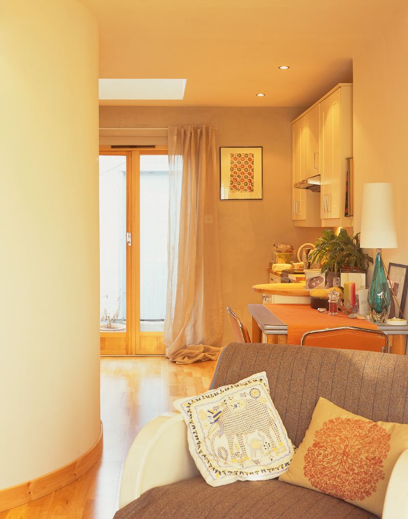 This semi-detached house was unaltered since its construction in 1953. Despite generous windows the original central corridor led to box-like rooms and an overall sense of confinement. While the external envelope remains largely unchanged the interior is transformed. Unexpected, delightfully open and light, space flows easily from Living, Dining and Kitchen areas each retaining a gentle sense of containment. The curved walled Bath/Shower Room houses an intimate bathing space whilst leading one around to the Kitchen and garden beyond.